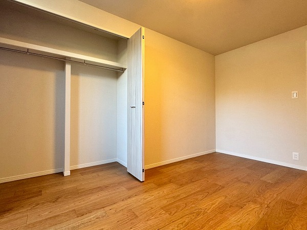 コンパクトすぎず広すぎない絶妙なサイズ感の洋室。家具配置がしやすく自分らしい空間作りを楽しめます。収納力のあるクローゼットが備わっているため、部屋を広く使えるのも嬉しいポイント。