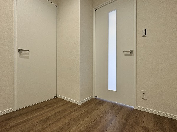 玄関を上がって左手にあるのが北向きの約5帖の洋室です。なんと、こちらの洋室にもバルコニーが付いておりました!光を遮る建物などがなく、安定した採光がお部屋を照らしてくれます。読書や作業などに最適なお部屋です◎
