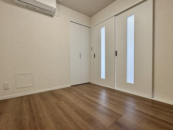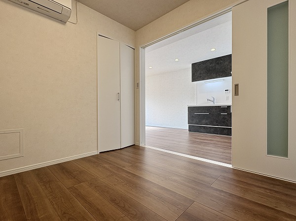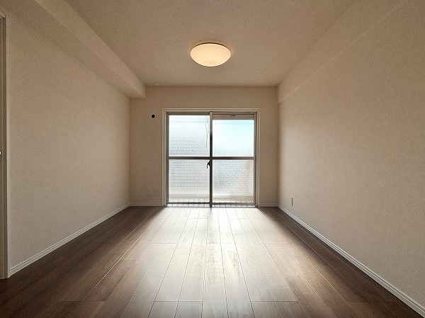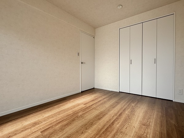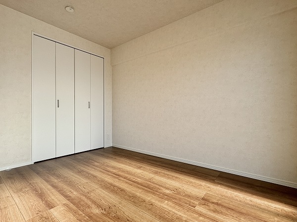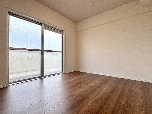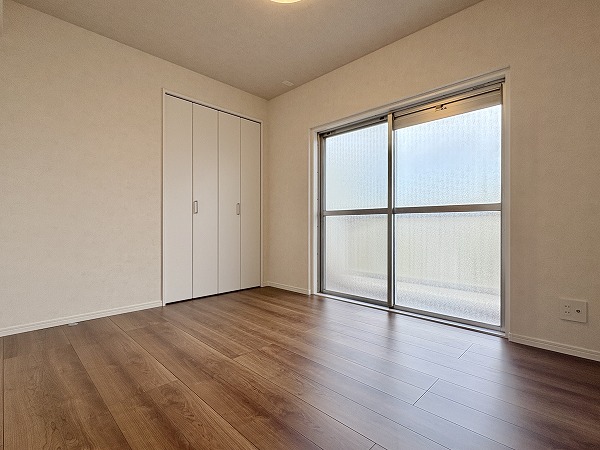 こちらはリビングの横にある約5帖の南向きの洋室です。リビングと同様に朝から温かい光が入り込むため、心地の良い目覚めが期待できます。窓を開ければすぐにフレッシュエアを取り込めるのが嬉しいポイント♩ぜひ、寝室としてお使いください!