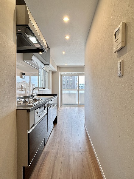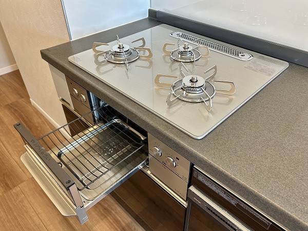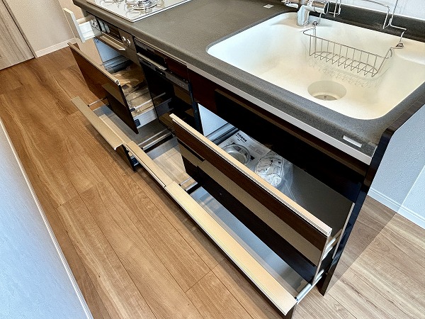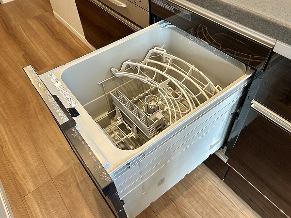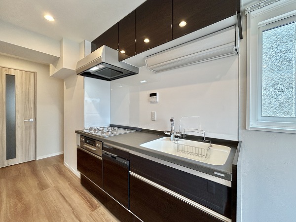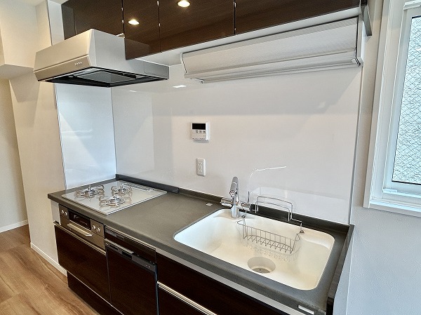 キッチンは壁付タイプに新規交換済み。ワークトップもゆとりある広さで下ごしらえも盛り付けもスムーズに行えますよ♪さらに、スライド式食洗機により腰をかがめずに食器の出し入れができるのも嬉しいポイント。