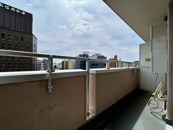 4.97㎡の南向きバルコニーは、横長の設計で洗濯物も効率よく干せそう☀干しきれない分は浴室換気乾燥機を併用するのもいいですね。前面道路からの車の音が気になる場合は、遮音性の高いカーテンで快適性を高められますよ。
