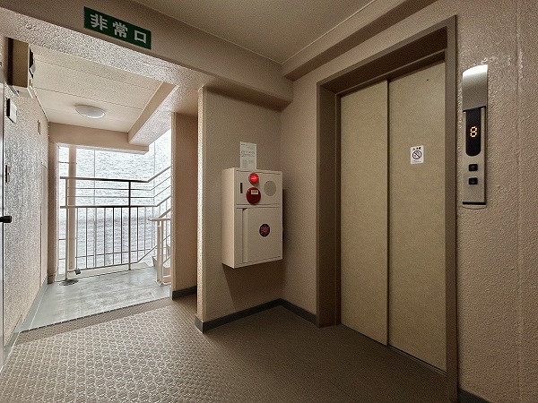 エレベーターは管理人室のそばにあり、奥まった位置に設置。建物外から乗り降りする様子が見えにくく、住民のプライバシーが守られているのが嬉しいポイントです。