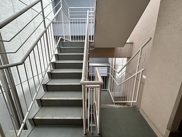 フロアは内廊下のように見えますが、階段の開口部を通して外気が取り込まれる外廊下設計です。廊下の視線が外から届かないため、安心して暮らせる空間となっています。