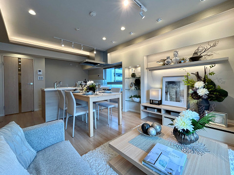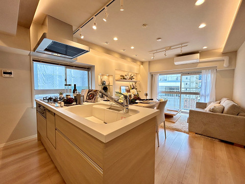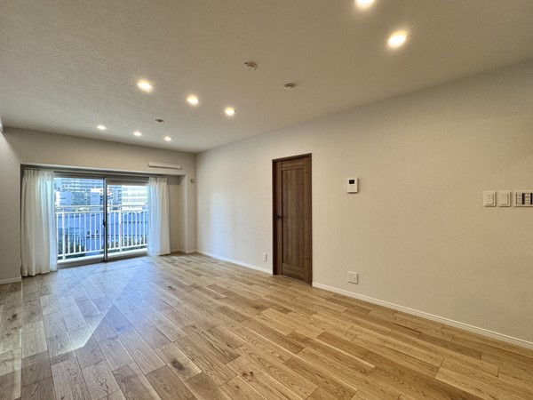 9階に位置する3LDKのお部屋は2025年12月に内装のフルリフォームを終え、まるで新築のようなお部屋に生まれ変わりました。LDKは18.3帖あり、家族の団欒に必要不可欠な大きめのソファも置ける広さがうれしいですね。お洒落なダウンライトがリラックスタイムを柔らかに包み込み、夜も温かに。