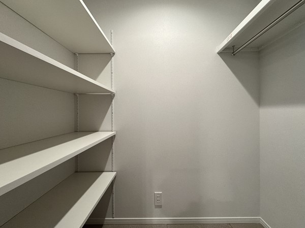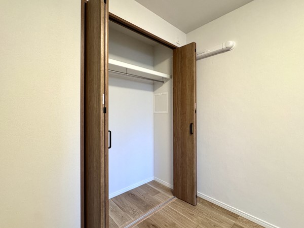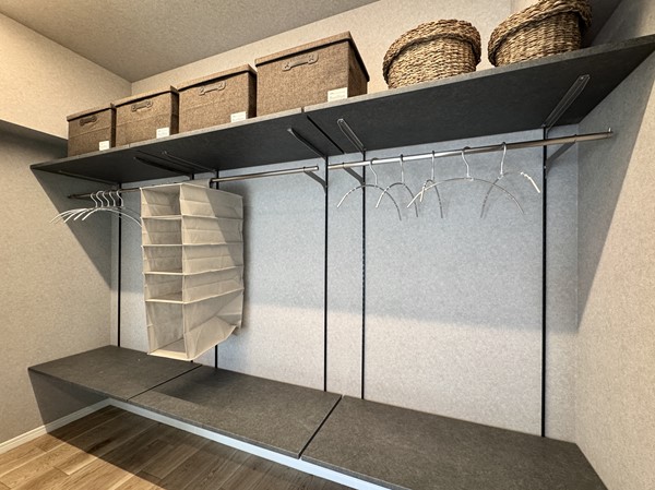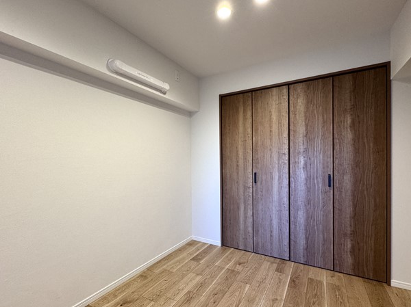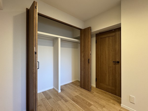 メインルームに隣接する洋室は主寝室としても最適です。窓を開ければ、季節の風を取り入れた爽やかな朝を迎えることができそうですね。三枚扉を開けた先は壁一面のクローゼットになっており、お洋服から晴れの日のドレスやシューズまで、アレンジして飾れる余白が残されていました。