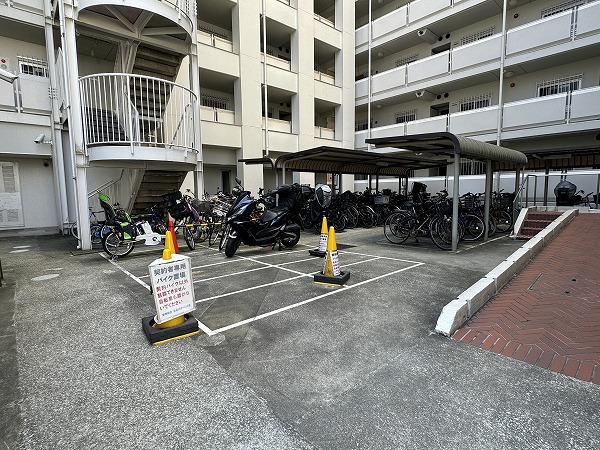 平置きタイプの駐車場を備えています。電動チェーンゲートが関係車両以外の車両の進入を制限・制御してくれます。