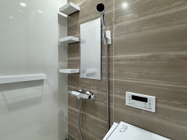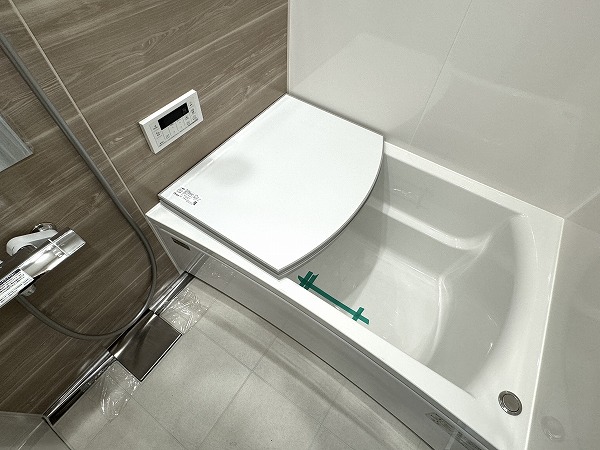 ブラウンの木目調パネルが温もりを添えるバスルーム。落ち着いた色合いで、1日の疲れをゆっくりと癒してくれます♡追い焚き機能付きのため、好きなタイミングで湯温を調整でき、半身浴や長風呂も快適。自分のペースでリラックスできる空間ですね。