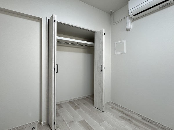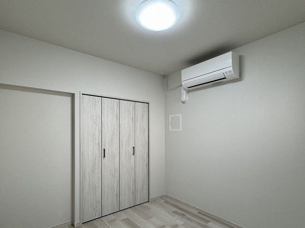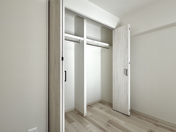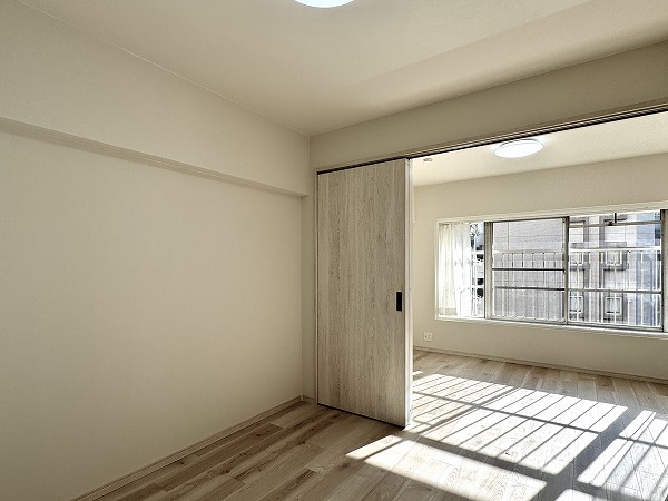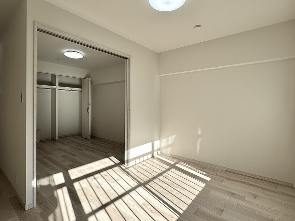 メインルームに隣接する洋室は約4.4帖。ややコンパクトな広さですが、スライドドアを開けることで空間が一体となり開放感が広がります。メインルームからの採光も取り込め、明るさもしっかり確保!もちろんクローゼット付きのため、収納面も安心で寝室やワークスペースとして柔軟に活用可能。