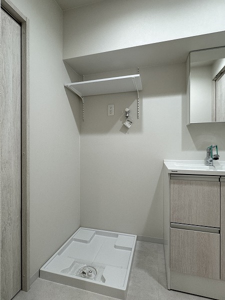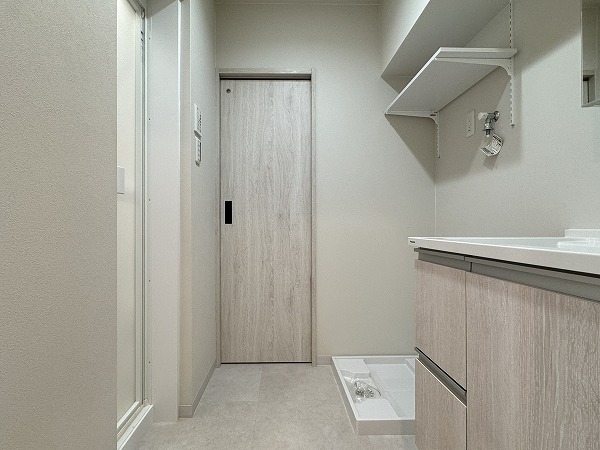 すべての水回りをまとめたサニタリールームは、機能的で使いやすい設計です。白を基調としたデザインが空間を明るく見せ、上品かつ清楚な印象。移動距離が少ないため忙しい朝や帰宅後の動線も快適に。