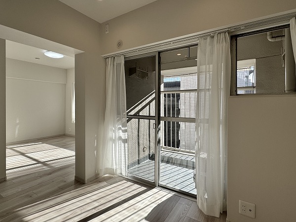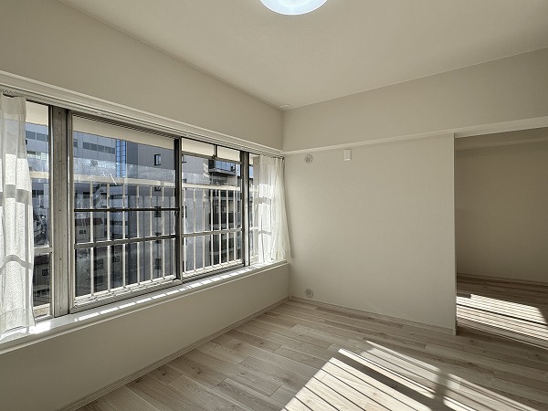 ご紹介するのは8階部分に位置する2LDK、専有面積59.22㎡の住戸。カップルやご夫婦での暮らしに程よい広さで、日々の生活に無理のないサイズ感が魅力です。東南向きのため朝からやわらかな陽光が差し込み、明るく心地よい室内環境を実現☀新規スケルトンリノベーションが施されており、設備や内装は新築同様の美しい仕上がりとなっています。