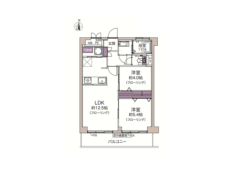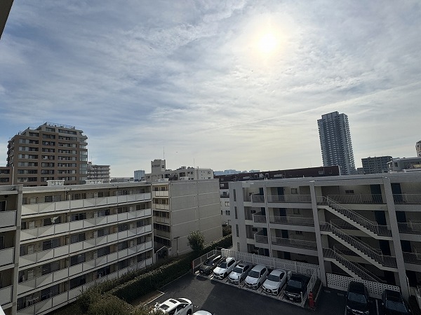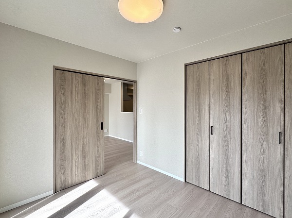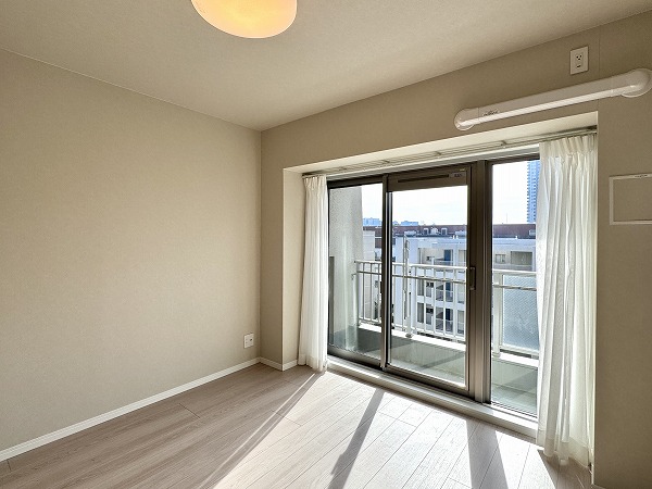 ご紹介したのは5階部分の2LDK。ゆったりとした一人暮らしからファミリーまで、幅広い層にマッチする一室です。南向きの大きな窓から視線が抜けるため、実寸以上に広々と感じられました。洋室は約5.4帖と約4.0帖の2部屋。寝室とワークスペース、主寝室と子供部屋など、暮らし方に合わせて役割を変えやすい距離感が魅力です。