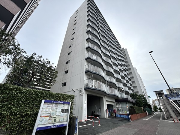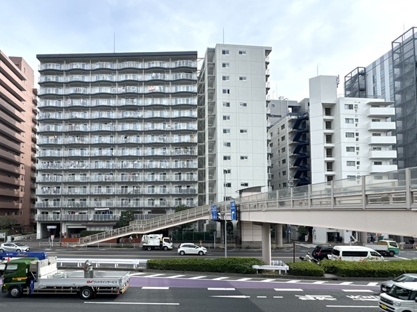 第一京浜沿いに佇む『大森ハイツ』は1978年6月築、総戸数344戸のビッグコミュニティ。駅から歩道橋を渡ってすぐ真横に位置しています。