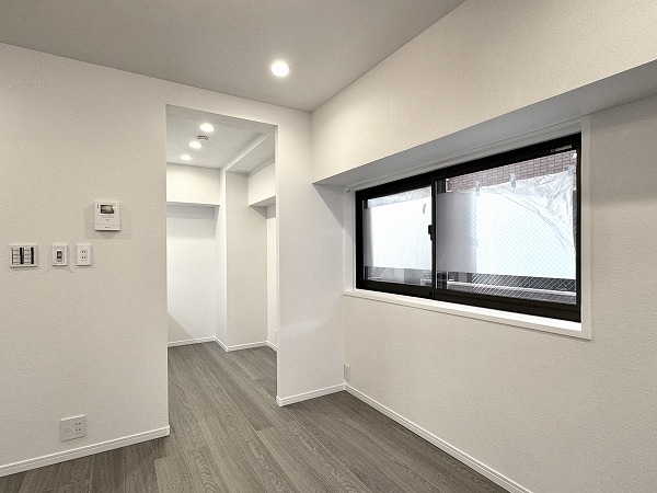 メインルームは玄関を入ってすぐ正面に配置され、住まいの第一印象を担う空間。縦長の間取りが奥行きを生み、視線が自然と抜けることで実際以上の広がりを感じさせます。ソファやダイニングの配置次第で、暮らしの表情を自在に描ける一室ですよ。