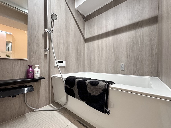 木目を基調としたバスルームは、柔らかい色合いが落ち着く空間。追い焚き機能を備え、いつでも温かいお湯でゆったりとしたバスタイムをお楽しみいただけます。朝の慌ただしい時間も夜のリラックス時間も快適にお過ごしいただけるのではないでしょうか。
