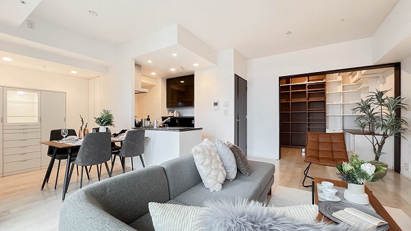 ベイエリアらしい暮らしが楽しめると人気な天王洲アイル駅。高層ビルが立ち並ぶ近代的な雰囲気の街並みが特徴です。駅から少し歩いた場所には大型複合施設「シーフォートスクエア」があります。お買い物やお食事はもちろん、敷地内の「天王洲銀河劇場」でミュージカルや演劇を鑑賞することもできるんです。晴れた日には、運河沿いのウッドデッキをお散歩するのもオススメ。お休みの日にぜひ足を運んでみては。「品川ふ頭橋」を渡ると、『品川イーストシティタワー』の姿が見えてきます。敷地内はどこもラグジュアリーなデザインで、高級感満載。スカイラウンジやフィットネスルーム、キッズルームなど豊富な共用施設が利用できるのも嬉しいですね。今回は高層階22階に位置する2LDKをご紹介します。ざらりとした手触りのタイルが随所に用いられ、スタイリッシュな雰囲気が漂っています。リビングダイニングキッチンは約18.4帖とゆとりがあり、ご家族全員がのびのび過ごせるはず。お部屋に家具が付いているので採寸や家具選びの手間が省け、お引っ越し自体のハードルも下がるのでは。設備性が高く、デザイン性にも優れた魅力満載の2LDK、ぜひ現地でご覧ください。 ライター:mii【24H23】