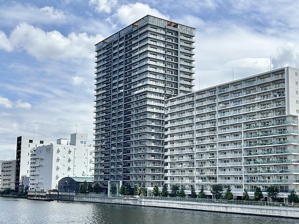 海沿いに佇むこちらのマンションが、今回ご紹介する『品川イーストシティタワー』です。「シティタワー」シリーズの1つで住友不動産旧分譲です。総戸数363戸、地上26階建ての免震タワーレジデンス。2018年に建てられたまだまだ新しいマンションで、敷地内はとても綺麗な状態が保たれていますよ。