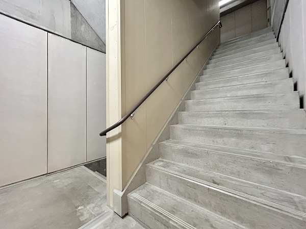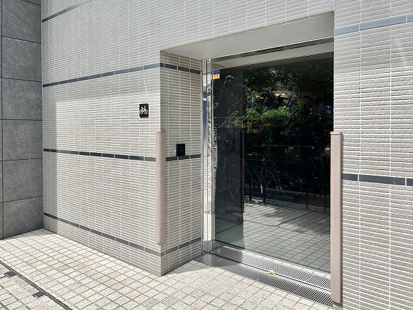 スタイリッシュなデザインのアプローチを進みます。段差が少ないフラットな造りで、ベビーカーや車いすをご利用の方でもスムーズにご通行いただけますよ。メールボックスへの入り口が独立して設けられていて、業者はこちらから行き来するようでした。同じスペースにペットの足洗い場も備わっています。