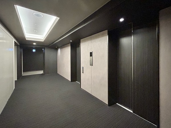 エレベーターは複数基備わっていました。フロアによって使用できるエレベーターが決められていて、混雑緩和が期待できますよ。タッチキーをかざさないと階数ボタンが押せないダブルオートロック仕様なのもポイント。