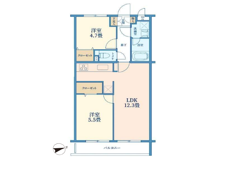 約4.7帖の洋室は、完全独立タイプの静かな空間。少しコンパクトなお部屋ですがしっかり窓もあり、換気や採光も問題ありません◎在宅でお仕事をしている方は、テレワークスペースとしても快適に使えそうです。
