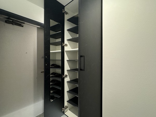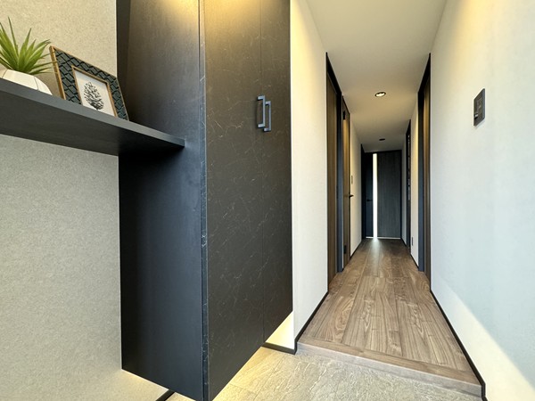 玄関に入ってすぐ左側のスペースには、小さなカウンターを完備。デザイン性が良いだけではなく、利便性を兼ね備えた痒いところに手が届く細やかな工夫が光ります。お部屋全体を通して、実際に暮らす人の事に対する配慮が伺える機能的な間取りでした。
