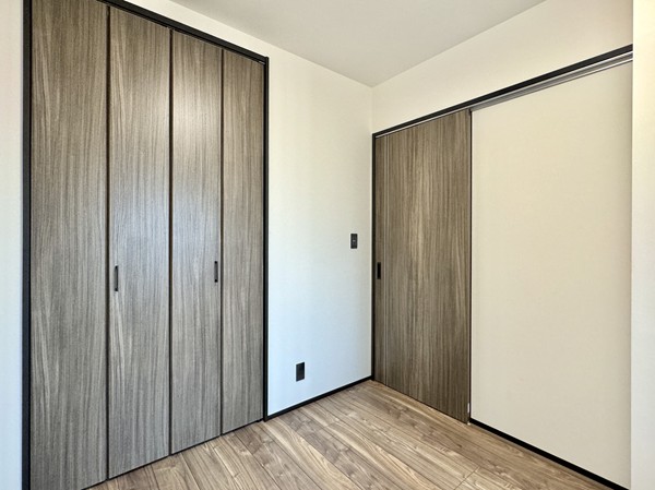 約6帖の洋室と約4.2帖の洋室には、共用廊下に面した出窓が設けられています。曇りガラスになっているので、カーテンを閉めなくても外からお部屋の中を見られていしまう心配はありません。3つある洋室にはすべてにクローゼットを完備。家族それぞれの寝室に最適です◎