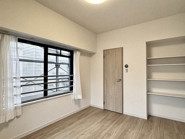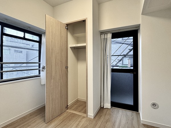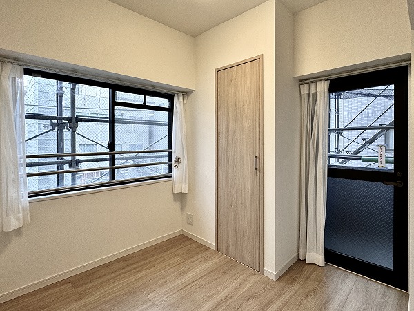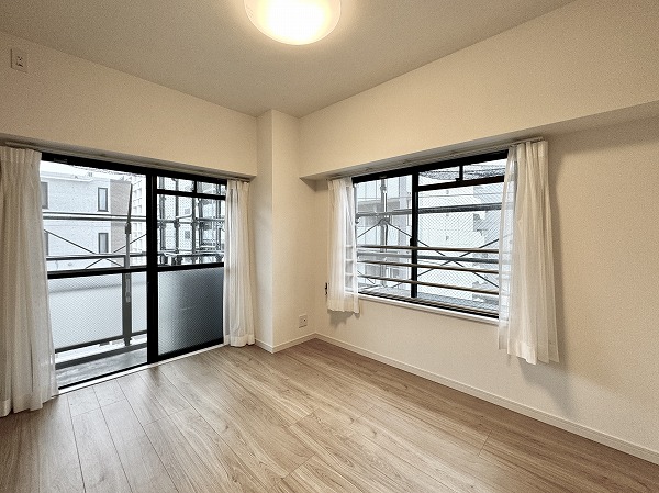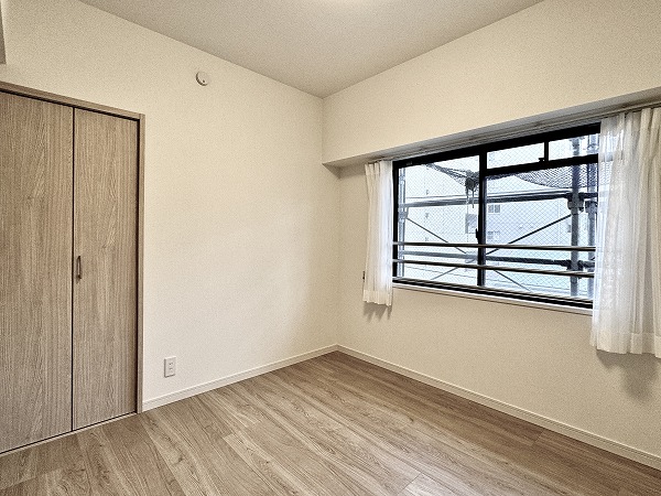 各洋室には窓と収納がしっかりと設置されており、暮らしやすさが感じられます。約6.1帖の広めのお部屋は角住居の特性を活かした2面採光で、自然光がふんだんに差し込み、明るく開放的な空間です☀
