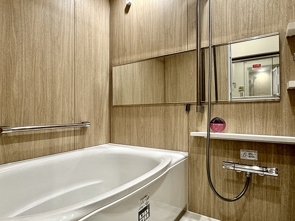 木目の温かみが感じられるバスルームは、浴室乾燥暖房機と追い焚き機能を完備。ワンタッチでお湯を温め直すことができ、季節を問わず快適に入浴できます♡