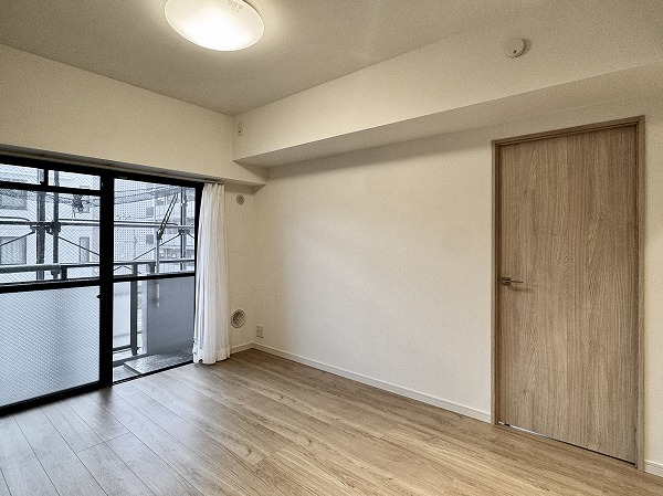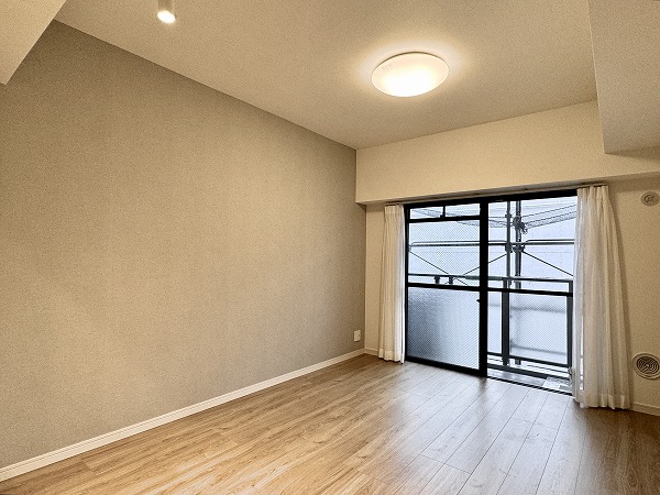 約4.5帖の洋室は2面採光で、東側のバルコニーに面したガラス扉から柔らかな光が入ります。また、西側のバルコニーはメインルームと約6.1帖の洋室からもアクセス可能で、風通しも良好です。