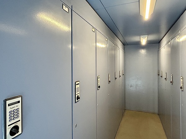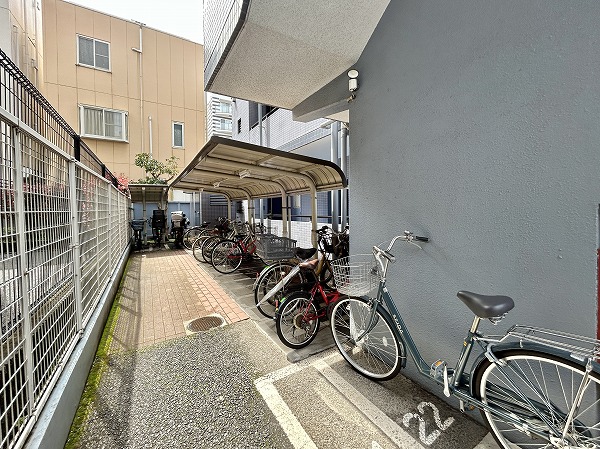 エントランス横には駐輪場とゴミ置き場を設置。奥にも駐輪スペースが広がり、利用者が多くても余裕があります。頑丈に作られたゴミ置き場は、カラスによる散乱の心配もなく安心です。