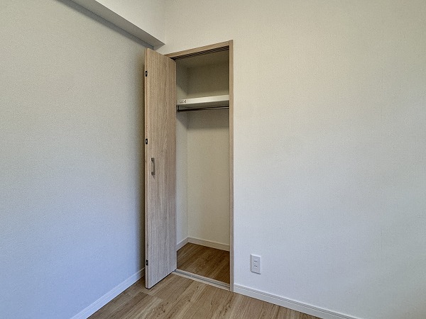 広さ約6.1帖の洋室は、ウォークインクローゼットとオープン収納を完備し収納力が抜群◎ベッドを置いてもゆとりがあるため、夫婦の主寝室としても快適に過ごせますよ。