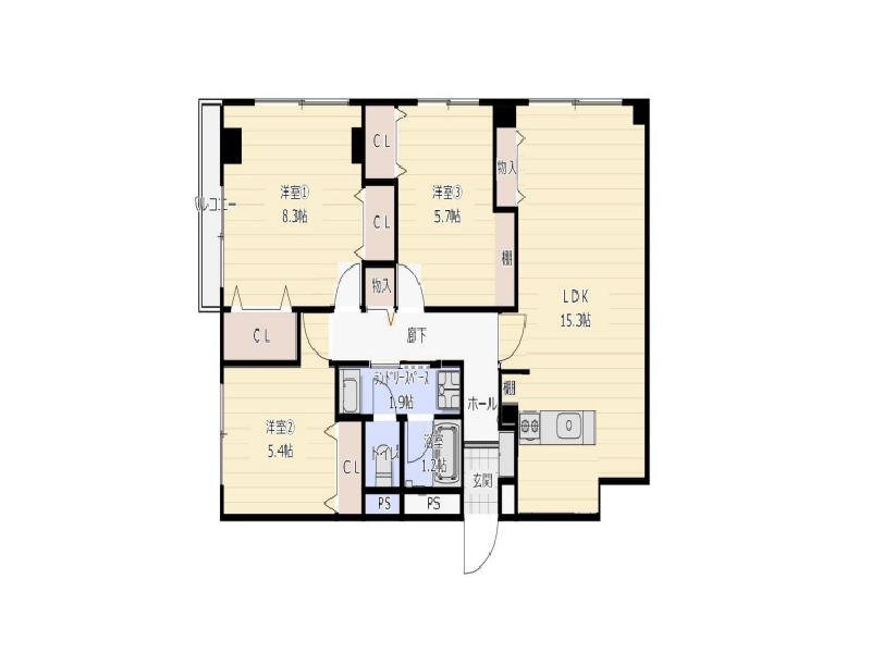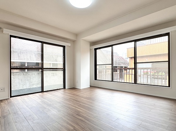 3つの洋室すべてに開口部を設け、採光・通風ともに良好☀約8.3帖の1番広い洋室は2面採光で明るく開放的。実際の帖数以上の広がりを感じます。