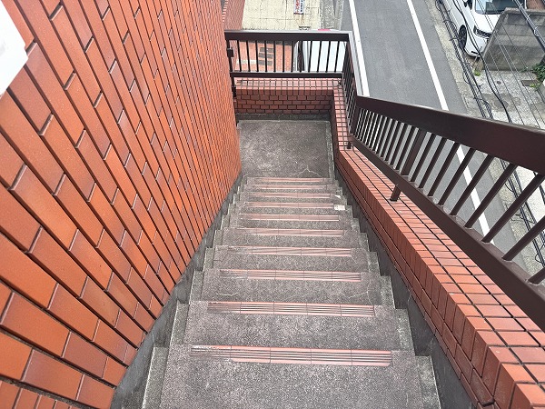 こちらはアプローチ。正面の外階段から直接お部屋のあるフロアへアクセスできる造りなので、スムーズにお部屋へ向かえますね♪
