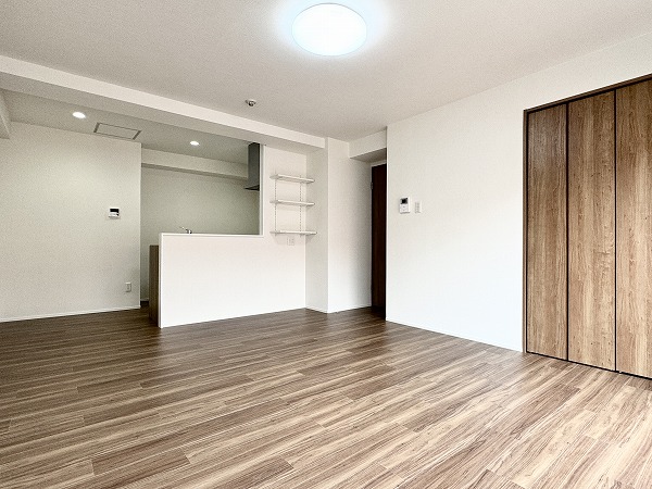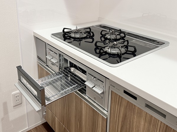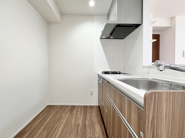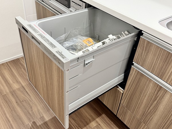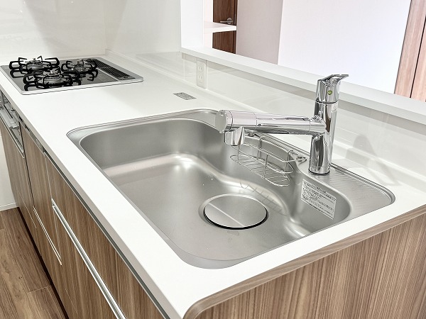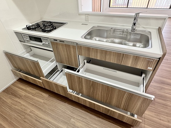 約15.3帖のLDKは、ゆとりある空間設計。キッチンはリビングダイニングを見渡せる人気の対面式で、家族との会話を楽しみながらお料理ができます。さらに食洗機付きのため、日々の忙しい家事をサポート◎