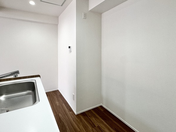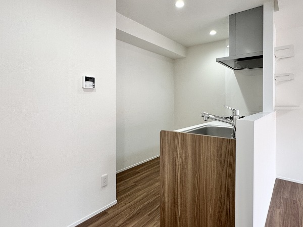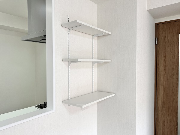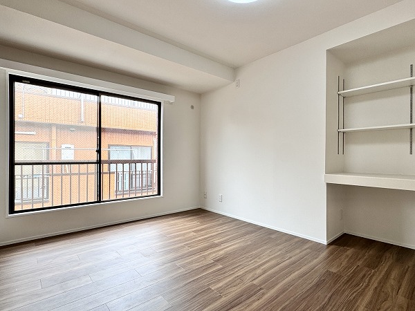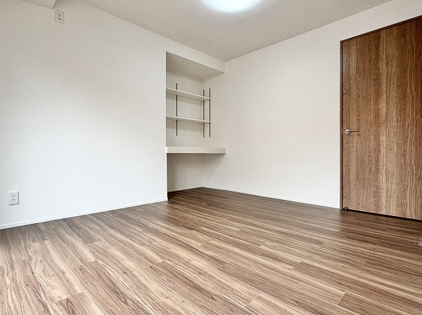 メインルームに隣接する洋室には、備え付けのカウンターと可動式棚が設けられています。在宅ワークのデスクや、趣味のディスプレイスペースとしても活用できそうです♪