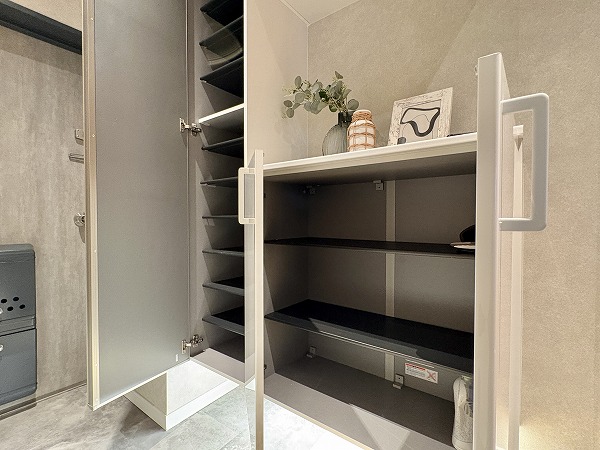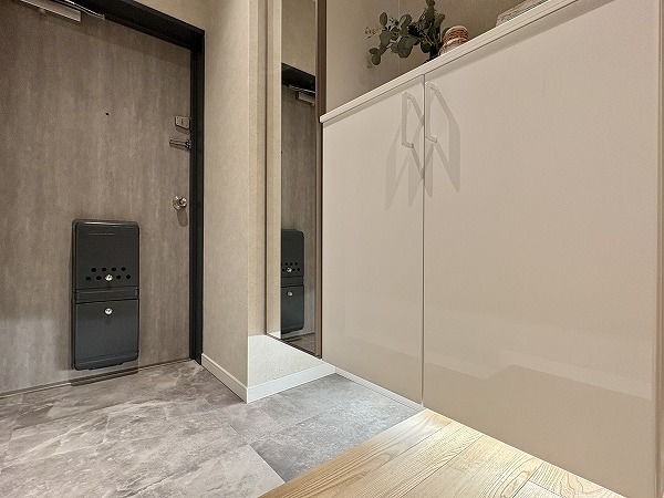 玄関はこちら。豊富な玄関収納があり、収納の一つが棚の役割を果たしておりました。カギやリップクリームなど、外出時に忘れやすいものはこちらに集約させましょう◎間接照明が高級感を演出しており、外出・帰宅時には毎度気分が上がりそうです♩
