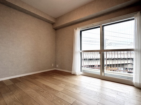 メインルームの奥には洋室が2つあり、こちらは約4.5帖の洋室です。窓は南東向きで、バルコニーへと続いていました。洗濯物を干すこともできますが、こぢんまりとしたスペースなので、テーブルや椅子を置いてくつろぐ空間としてみてはいかがでしょうか✧