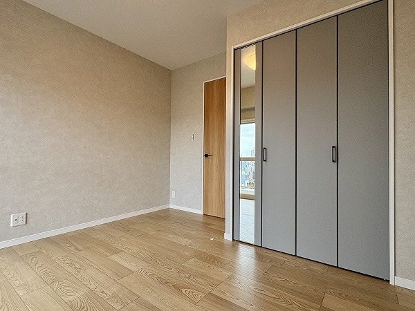 メインルームの奥にある約5.0帖の洋室は、北東向きの窓と南東向きの窓による2面採光が嬉しいお部屋☀朝からお昼ごろまで、温かい光を屋内に届けてくれますよ。サッと目を覚ましたい忙しい朝も、のんびりとヌクヌク起きたい休日の朝も、どちらの朝にもピッタリの寝室となるでしょう。