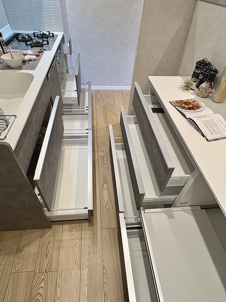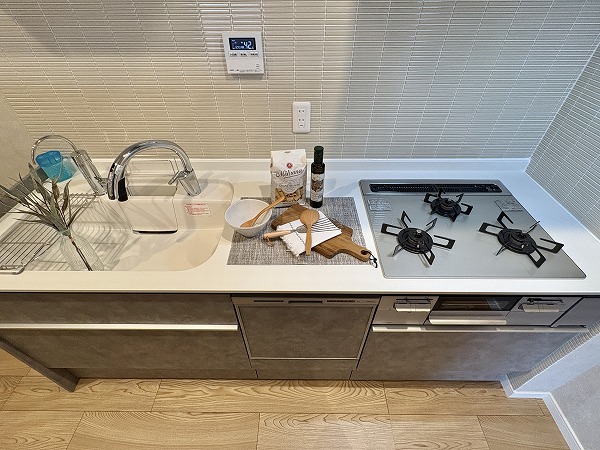 ペニンシュラキッチンはリビングダイニングと仕切られたセパレート型で、手の込んだお料理やお菓子作りなどに最適です♩調理スペースと収納が広く多く設けられているため、使い勝手も最高◎友人と一緒にお料理を作ってみたりするのも楽しそうです!