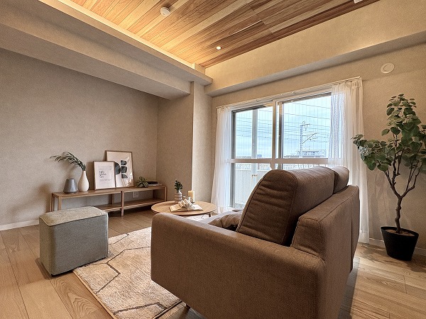 今回ご紹介するのは2階部分の角住戸。日照や通風に配慮された配置で、室内に入ると外の明るさをほどよく取り込んだ、開放感のある空間が広がります。ペットと暮らせる点も、暮らし方の選択肢を広げてくれそうです。