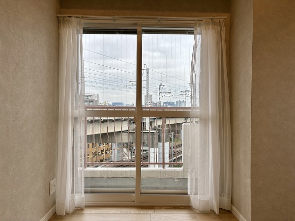 バルコニーは2つあり、こちらはメインルーム側にあるバルコニーです。横に長いので、洗濯物を干すだけでなく、観葉植物の育成やプランター栽培などもできそうなワイドな造り。朝方の心地よい日差しが入り込むため、洗濯は朝派だという方はこちらに干しましょう◎