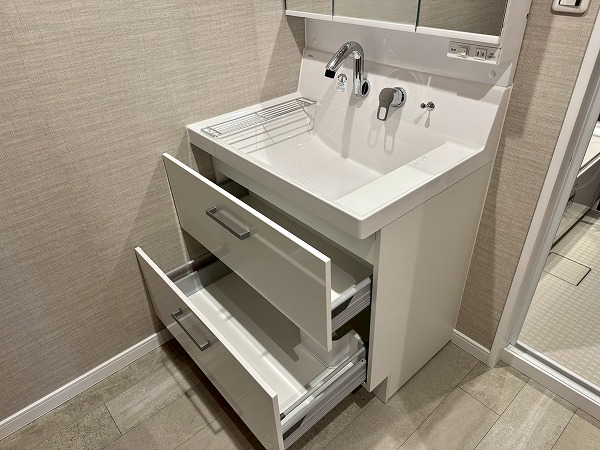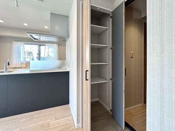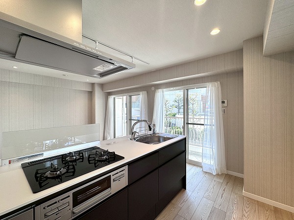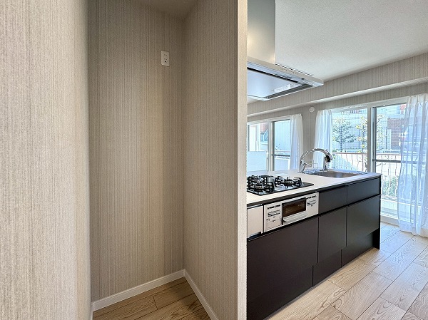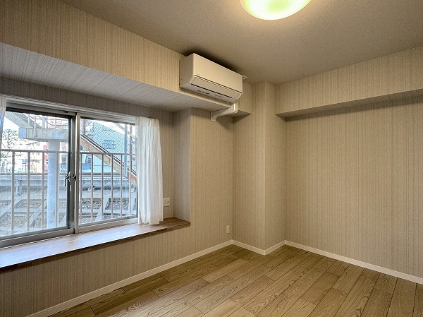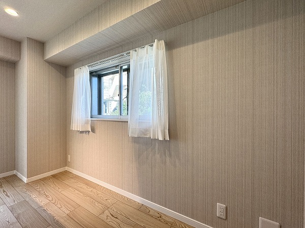 間取りは1LDK、専有面積は約50㎡。家具の置き方次第で、ひとり暮らしにも、ふたり暮らしにも柔軟に対応できそうです。約12帖のメインルームは大きな窓が取り入れられ開放感抜群。キッチンの背面にも窓があり、自然と視線が抜けて実寸よりも広々と感じられました。洋室は約5.5帖ほど。クローゼットが2面も設けられているため、衣類や生活用品を用途別に分けて収納しやすく、空間をすっきり保ちやすいのも魅力のひとつ。