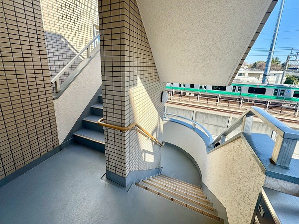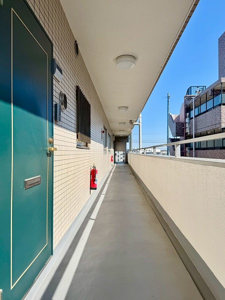 共用部には外階段が設置され、フロア間の移動もスムーズ。普段使いとしても便利ですが、非常時の避難ルートとしても安心感があります。さらにエレベーターも完備されており、総戸数28戸のマンションであれば待ち時間も少なく利用できそう◎