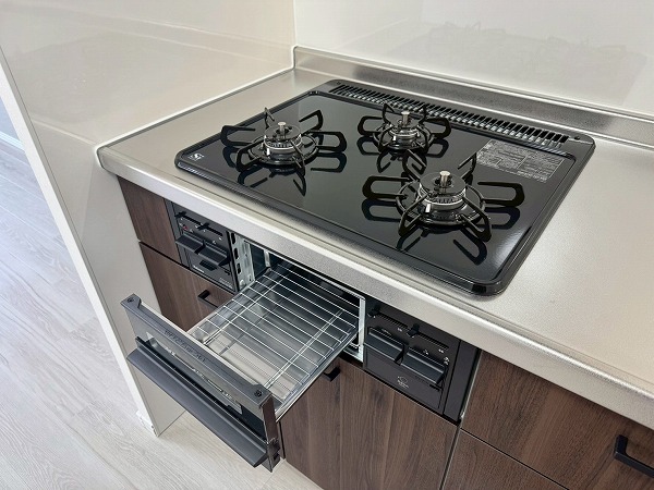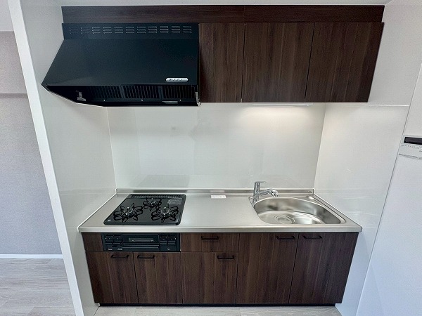 キッチンは壁付けタイプに一新され、作業動線がすっきり。収納もたっぷり備えられているため、調理器具や食材の整理がしやすく毎日の料理もストレスフリー。シンプルで効率的ながら、インテリアに溶け込むデザインも魅力ですね。