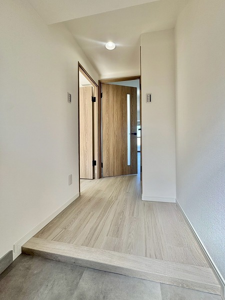 お部屋は6階部分の角住戸。専有面積47.46㎡の2LDKで、2026年2月にリノベーションが完了しています。玄関を入ると全体的にすっきりとした内装で、これから自分たちらしい空間をつくっていく楽しみがありそう。約9.3帖のリビングダイニングキッチンにはグレーのアクセントウォールが設けられ、シンプルな空間の中にほどよい個性をプラスしています。お気に入りのソファやアートを合わせて、カフェ風インテリアのような雰囲気にしてみるのも素敵だなと思いました。