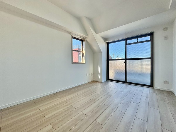 隣の約6.0帖の洋室は2面採光で、思わず窓を開けて風を通したくなるような明るさ!スライドドアで仕切られていますが、思いきってドアを外しワンルームのように開放的なレイアウトにして暮らすのも楽しそうです。