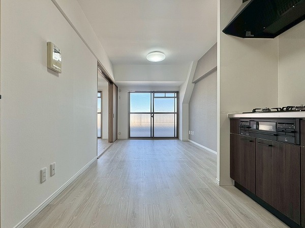 上階の足音を気にせず過ごせる6階角住戸。北西向きの窓からやさしい陽射しが届き、47.46㎡の2LDKは2026年2月にリノベーションが完了しました。暮らしやすさを追求した室内は、アフターサービス保証付きで安心して新生活をスタートいただけます✧