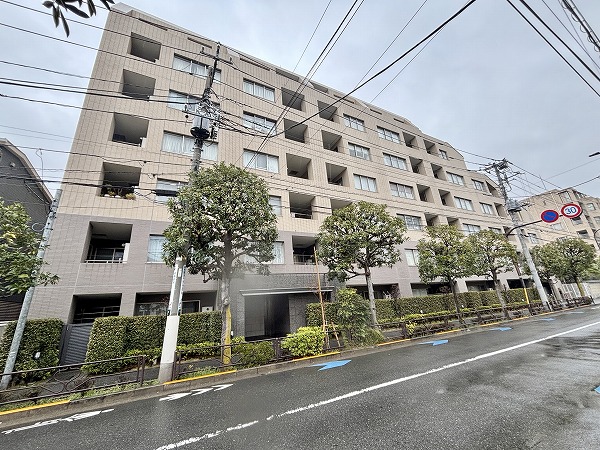 株式会社大林組施工、東京建物株式会社旧分譲の『グランヴェール六義園』。地上7階建て、総戸数49戸の新耐震マンションです。タイル張りの上品なデザインが素敵ですね。