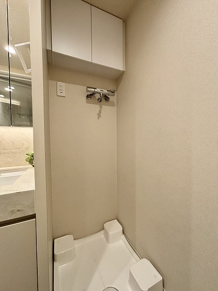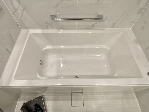艶やかな白いパネルがバスルームに高級感を醸し出しています。床が広く、ペットのシャンプーがしやすいはず。バスタブも大きめサイズです。お子様と一緒にゆったりご入浴いただけますよ。