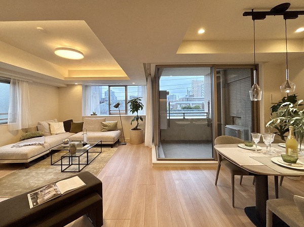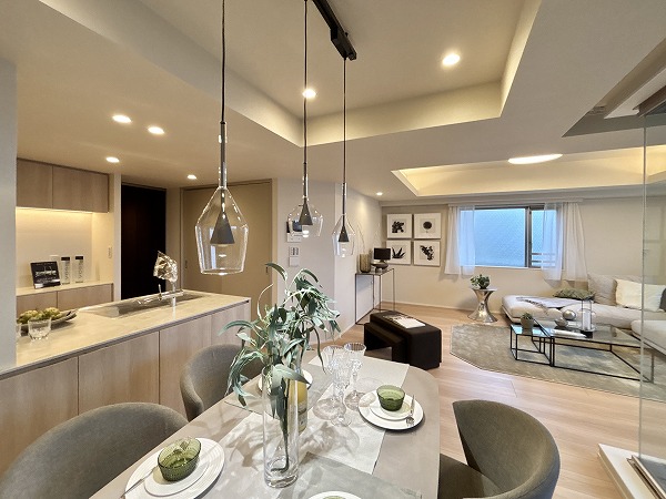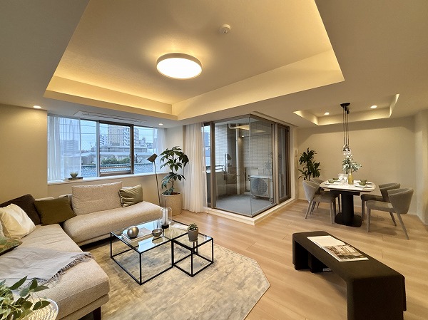 ご家族とゆったり過ごせる3LDKをご紹介します。専有面積91.51㎡と広々とした造りになっていますよ。南東・北東角部屋で窓が多く開放的。デザイン性にこだわったリノベーションにも注目です。