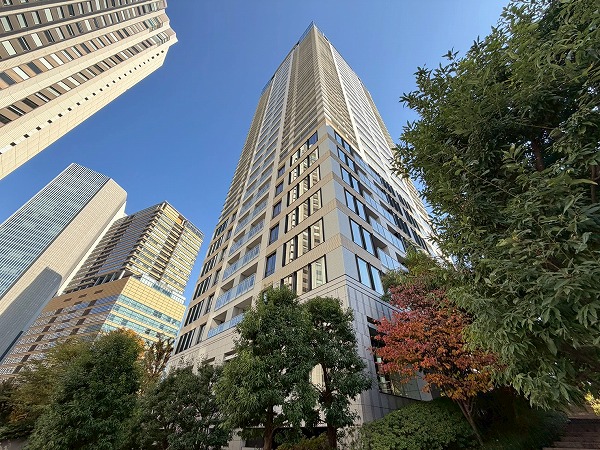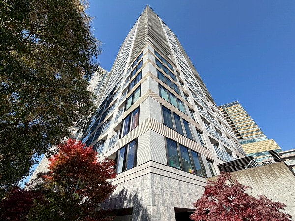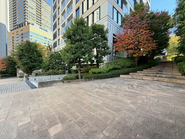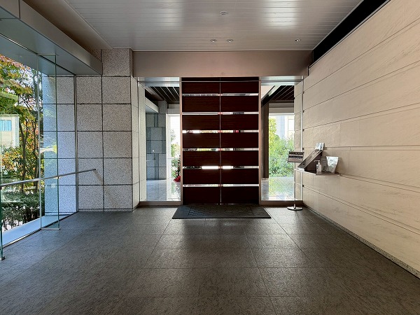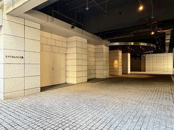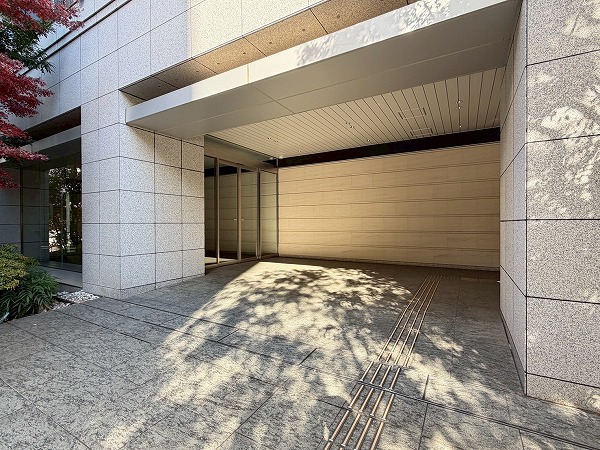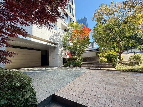 建物へと続くアプローチは、街の喧騒から少し距離を置きながらエントランスへと導いてくれる落ち着いた動線です。足元の舗装がきれいに整えられ、視線の先には高層棟がゆったりと構えることで、歩きながら自然と気持ちがオフモードへ切り替わっていきます。